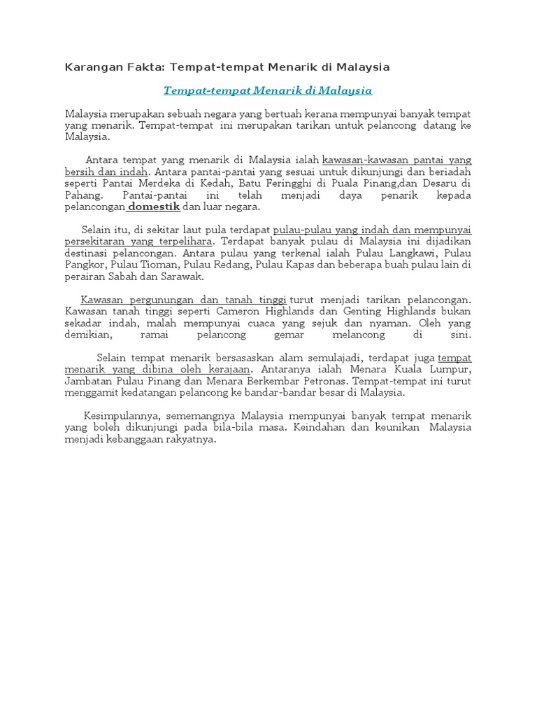 Karangan Fakta Tempat Menarik Di Malaysia Pdf